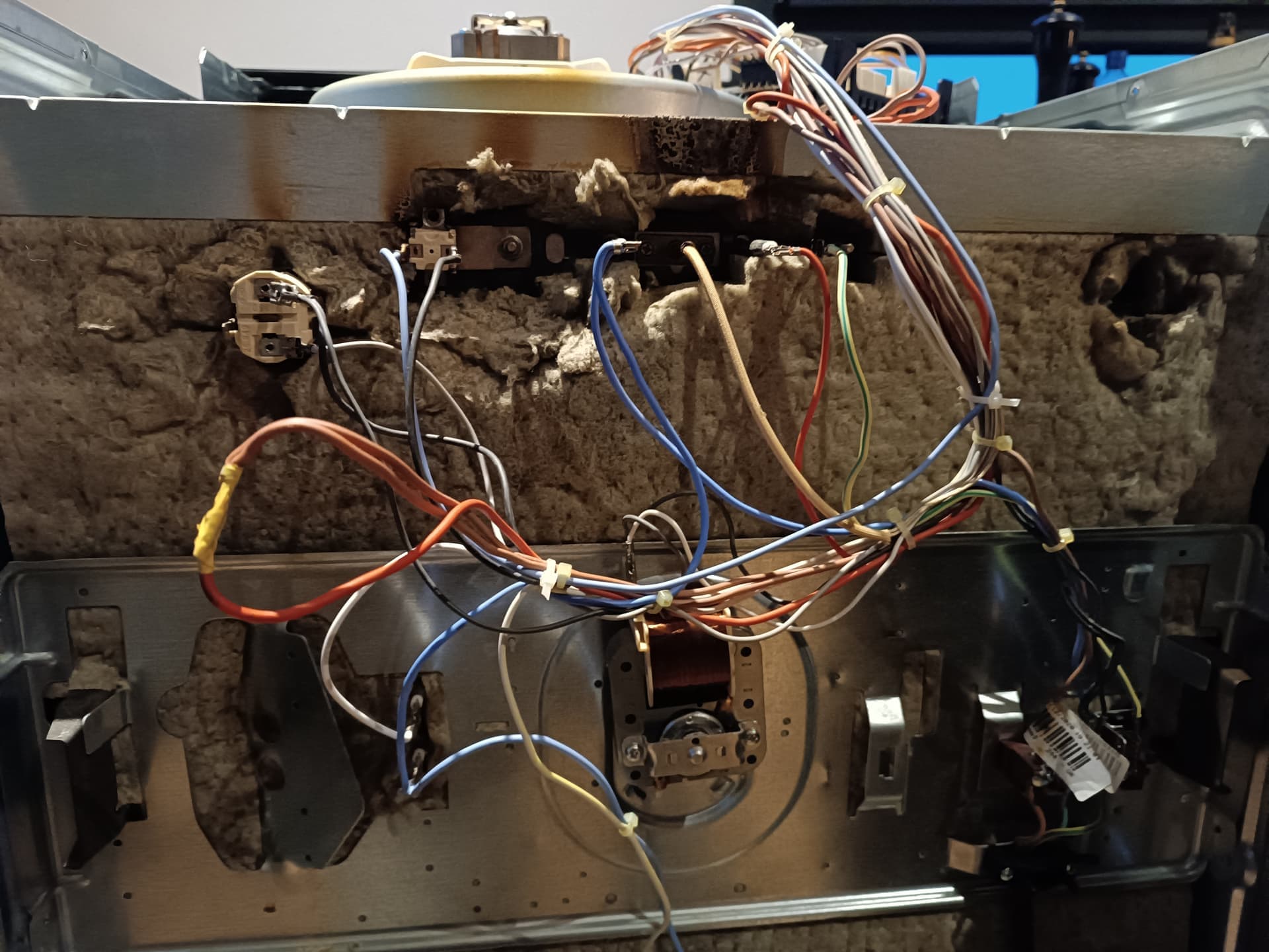 Sur la photo, c’est au niveau du chatterton jaune: le fil rouge vas vers le klixon, et les fils marrons vont vers la carte de puissance, et le verouillage de porte.
