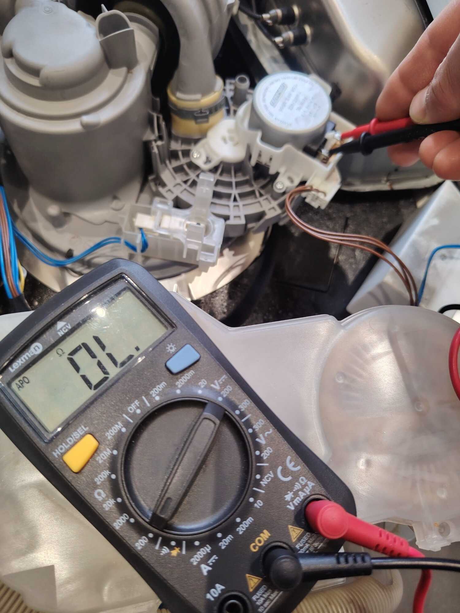 -Moteur switch water (répartiteur) => Ohmmètre sur les 2 bornes = OL (photos jointes)