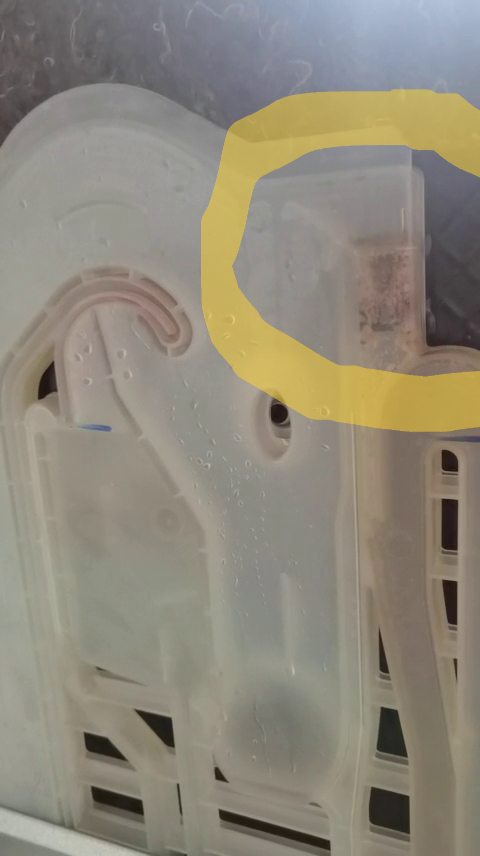 Certes votre LV a été victime d’un écoulement quelconque sous la cuve à un moment donné, mais si le système anti-inondation avait détecté de l’eau sous son flotteur, le remplissage en eau n’aurait jamais été autorisé par l’électronique de contrôle.