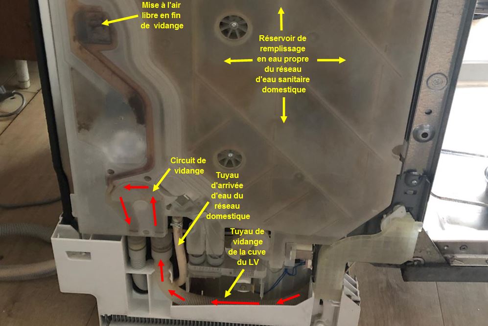 // De votre côté, pouvez-vous déjà publier une photo de l’endroit où le tuyau de vidange rentre dans le LV (en bas donc et à l’AR du LV) ?