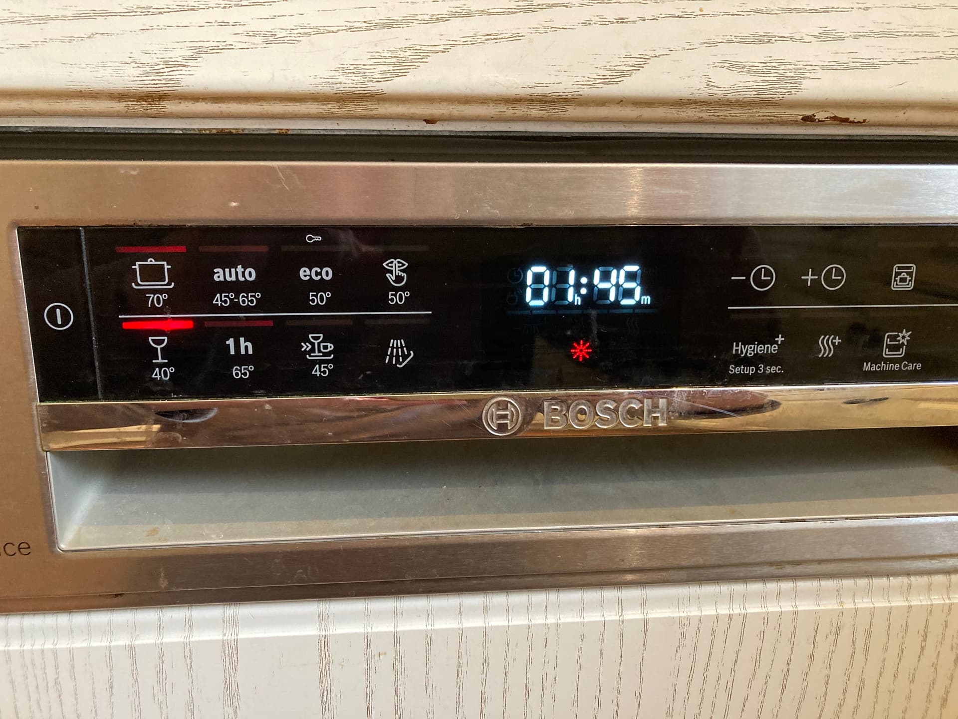 Impossible de démarrer un cycle lavage. Il n’y a pas de code erreur pouvant indiquer le type de panne. Par contre, un voyant du cycle 40° reste allumé en permanence et la durée du cycle 01:45 clignote (Voir photo). Impossible de choisir une autre programmation, et impossible de faire démarrer la machine et impossible d’éteindre la machine (forcé de la débrancher). Avez-vous une idée de ce qu’il faut faire ? Merci par avance.