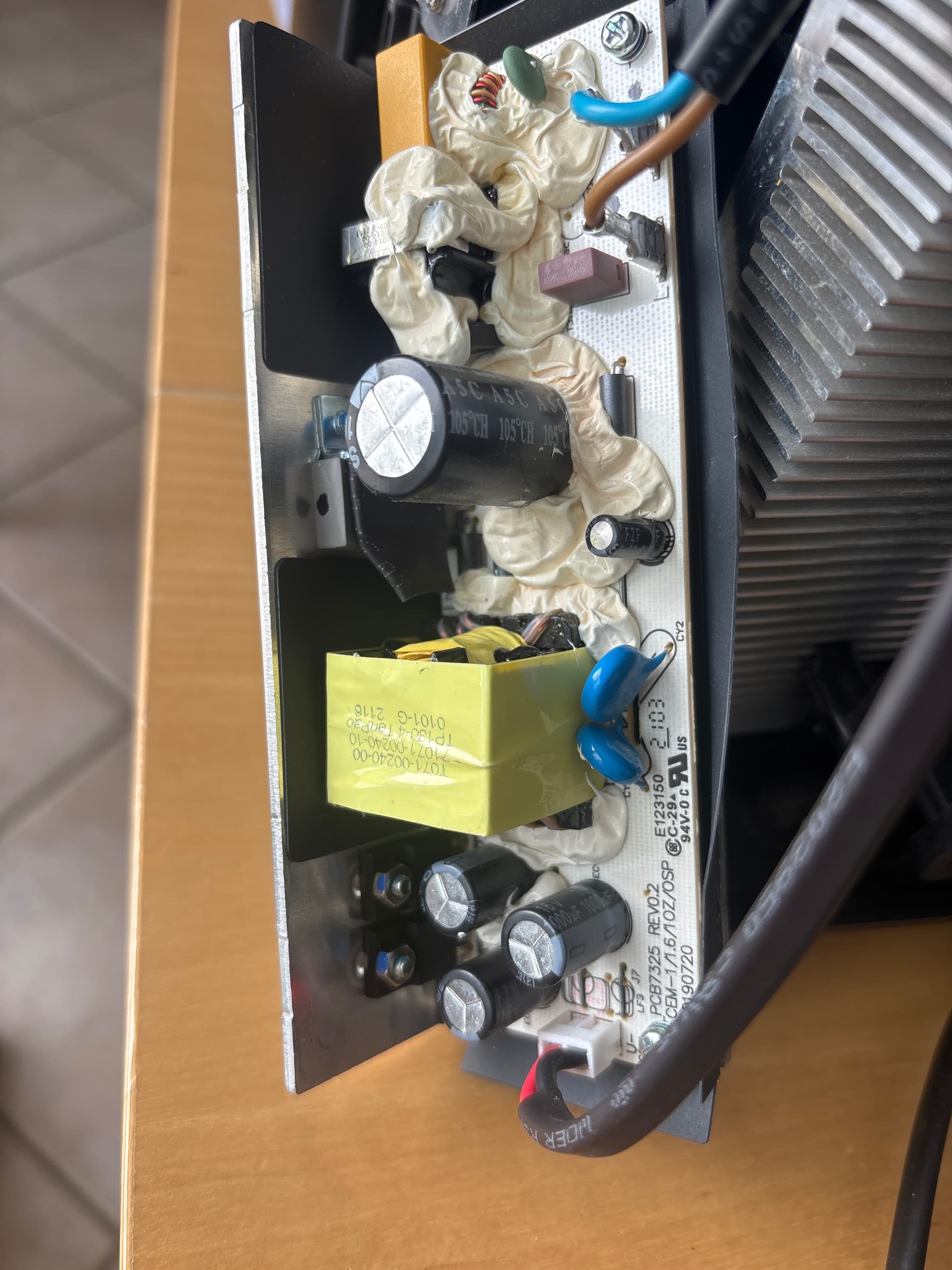 Bonjour le fait qu’il ne soient pas gonflés ne veut pas dire qu’ils sont bons ! Il faut les démonter pour les vérifier au capacimetre. Vérifiez également ceux du primaire le jaune et l’autre gros noir du primaire.